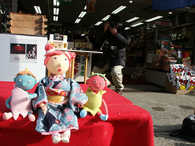 参道の滝屋さんで取材のカメラマンが撮影中。お互いが撮り合うちょっぴ変な光景。